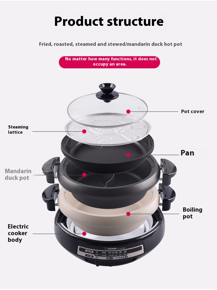 Yuanyang Electric Hot Pot Dual-purpose Household Multi-functional Stainless Steel Smart Electric Pot For Frying,Roasting And Cooking PVH30 C