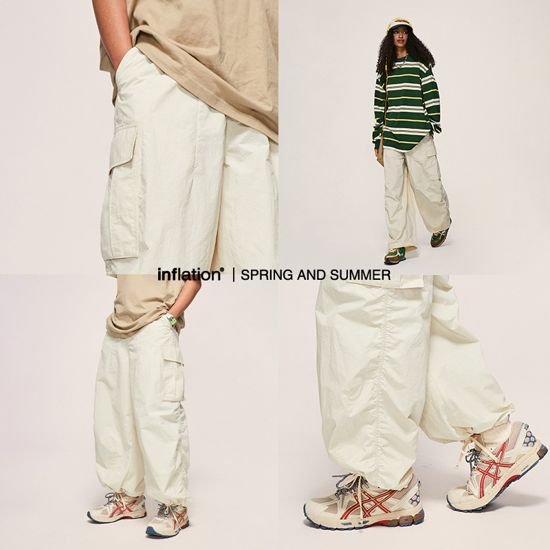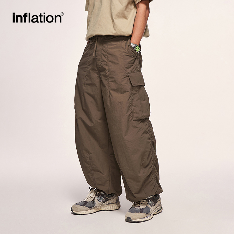 INFMen's Wear|Fine Plaid Loose Overalls Wide-leg Pants Spring And Summery Brand Three-dimensional Pocket Windbreaker Pants For Men