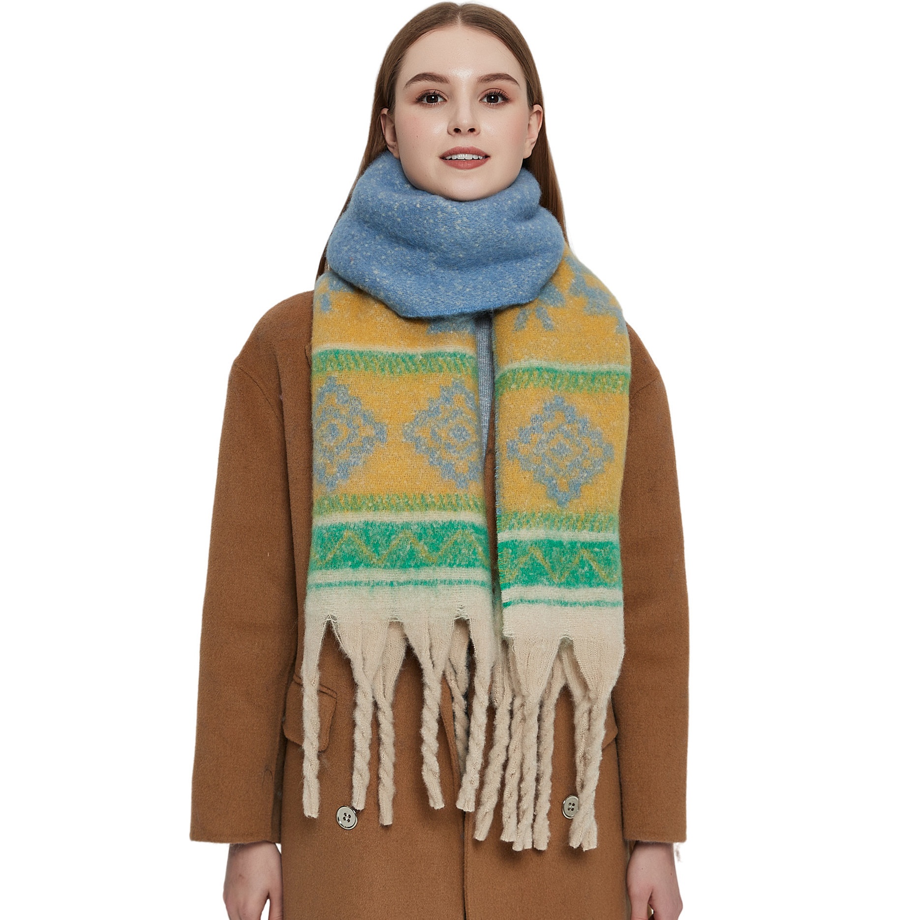 Foreign Trade European And American Hoop Yarn Autumn And Winter Imitation Mohair Jacquard Thick Beard Scarf Ready-made Shawl