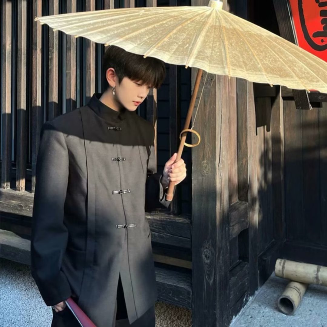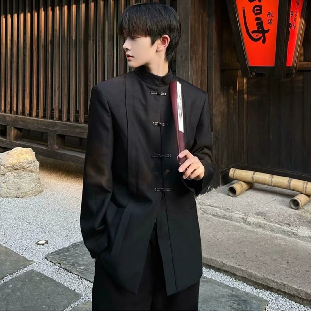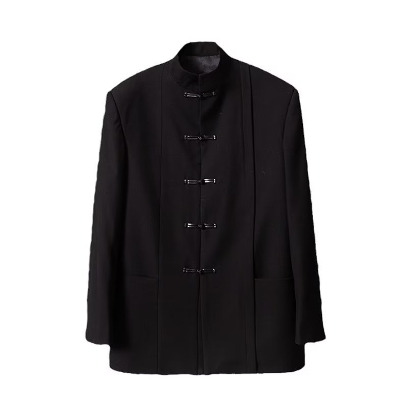 Casual Retro Thin Chinese Style Stand Collar Jacket Men's Spring And Autumn High-end Black Zhongshan Suit Topy