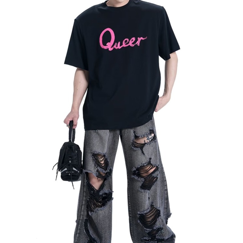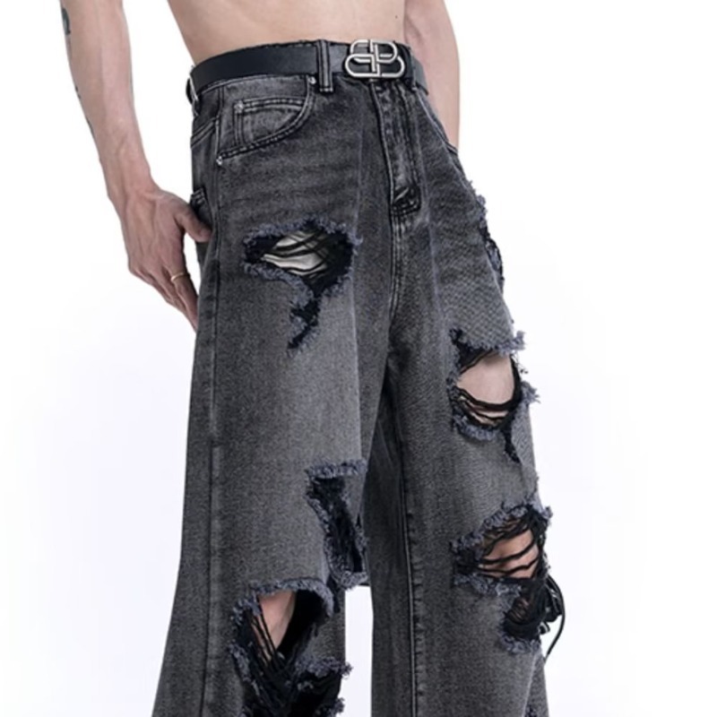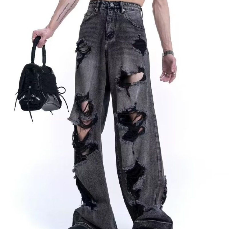 American High Streety Men's And Women's Ripped Beggar Denim Trousers,Versatile Hip-hop Niche Design Pants,y