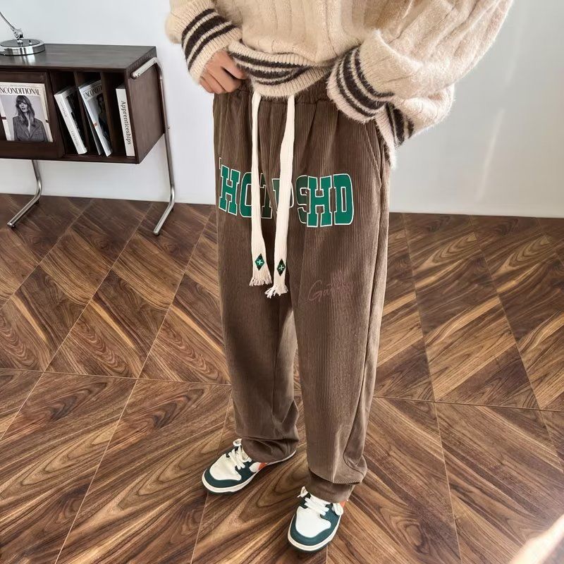 Corduroy Pants For Men In Autumn And Winter,Thick Fashion Brand High Street Sports Pants,Loose Straight Pants,Wide-leg Casual Trousers