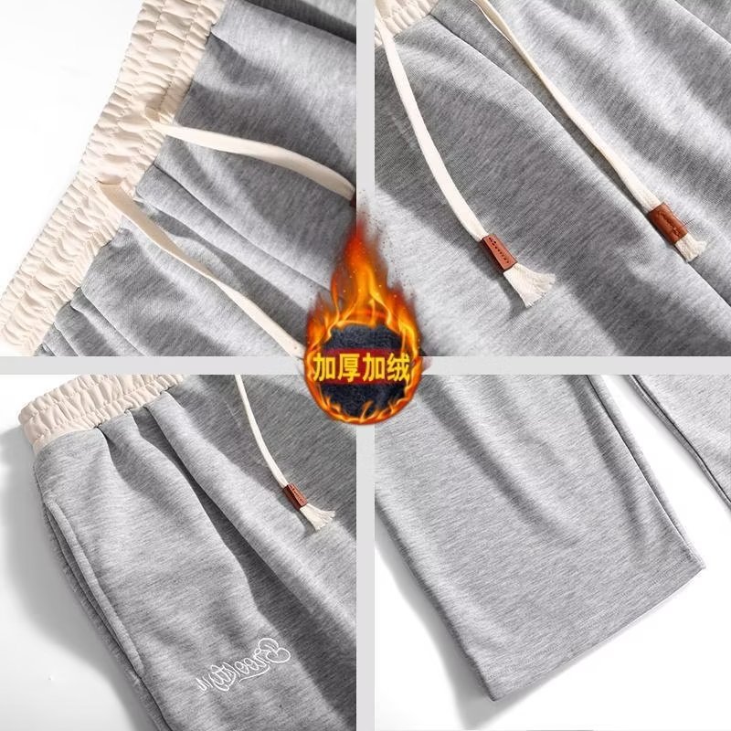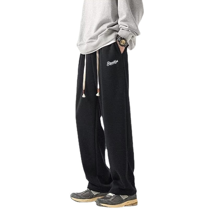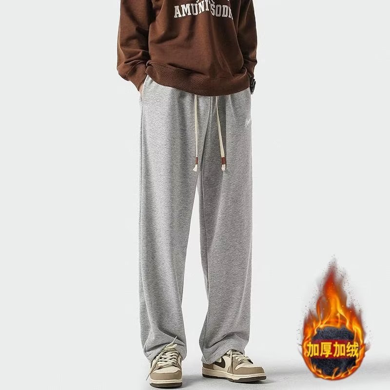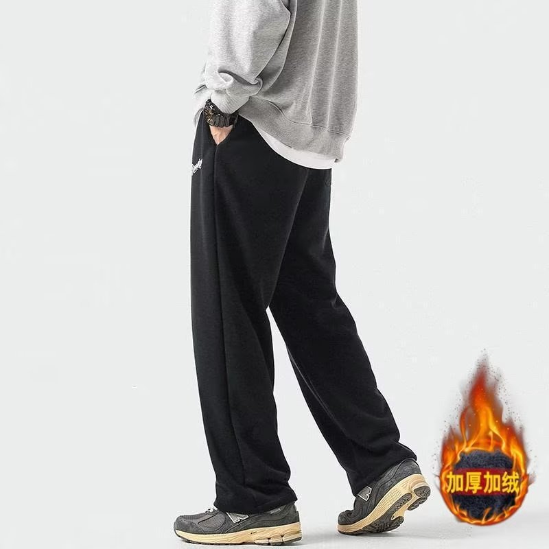 Men's Plush Trousers Autumn And Winter Style Hong Kong Style Large Size Solid Color Loose Straight Straight Drape Thickened Warm Casual Sweatpants
