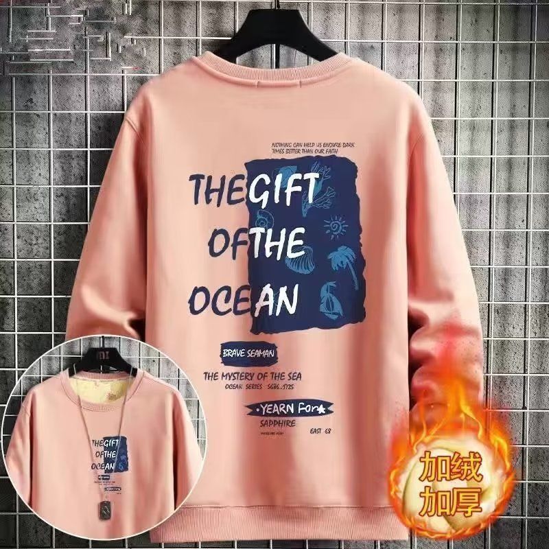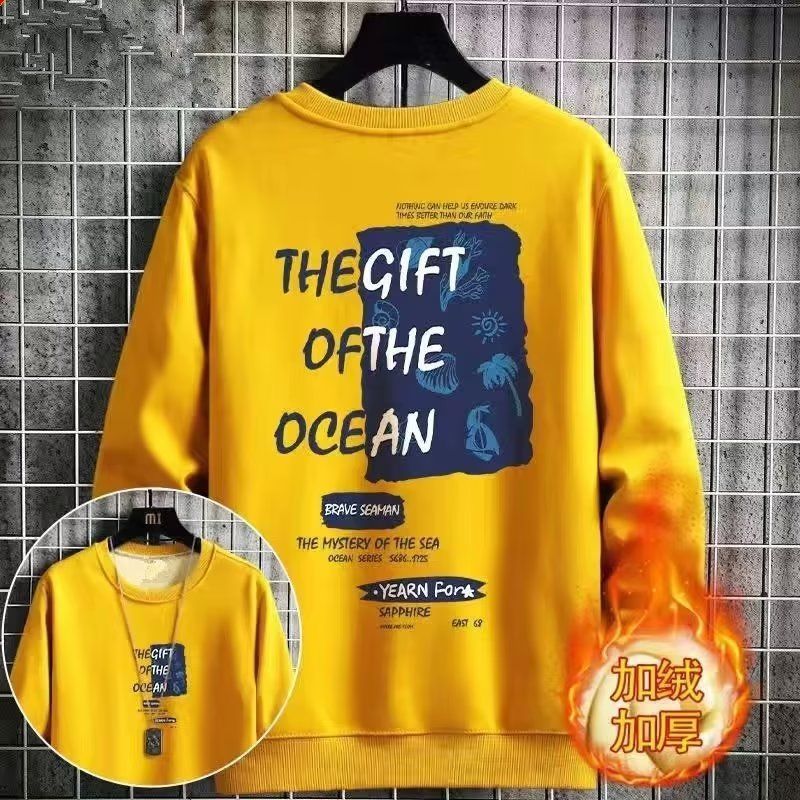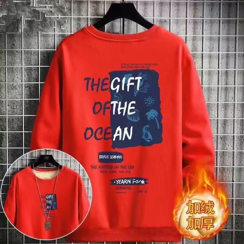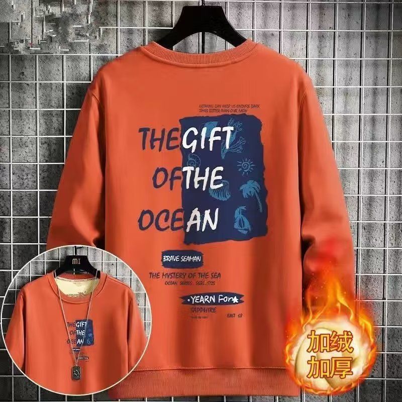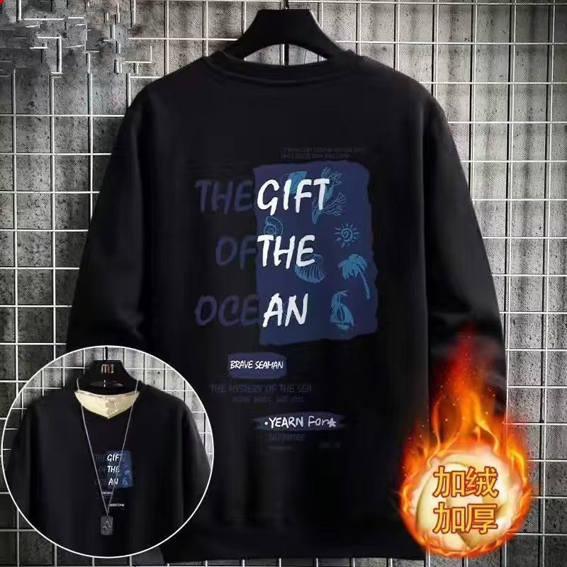 Winter Thickened Velvet Sweatshirt For Men,Lamb Velvet Warm Round Neck Tops,Youth Loose And Versatiley Bottoming Shirts