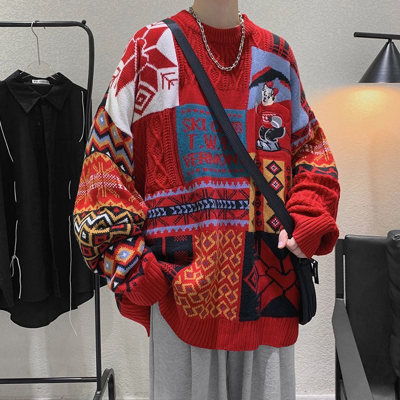 Sweater Men's Winter Style Loose Lazy Style Pullover Sweatery Brand Hong Kong Styley Couple's Sweater