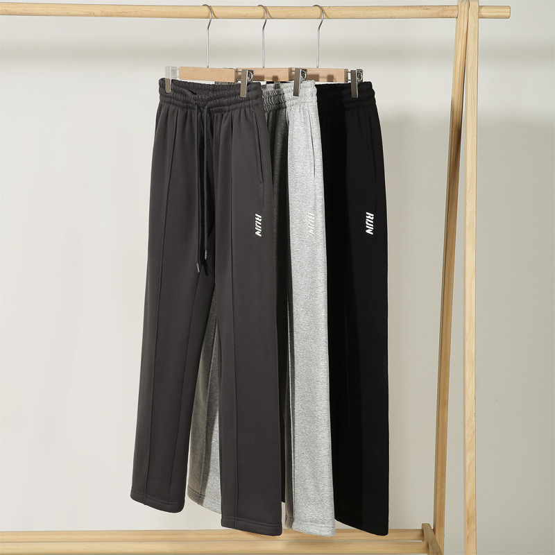 Denjue Men's330g Velvet Sweatpants Autumn Loose Unisex Letter Embroidered Straight Casual Pants