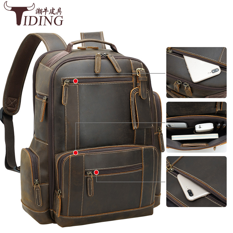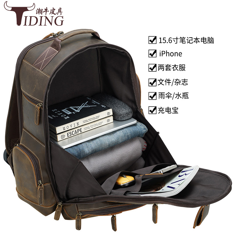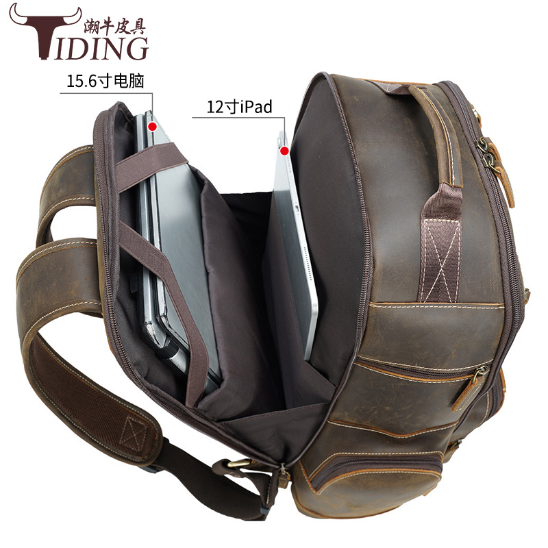 Special Clearance Crazy Horse Leather Outdoor Camping Travel Backpack Multifunctional Cowhide Computer Backpack Genuine Leather Backpack