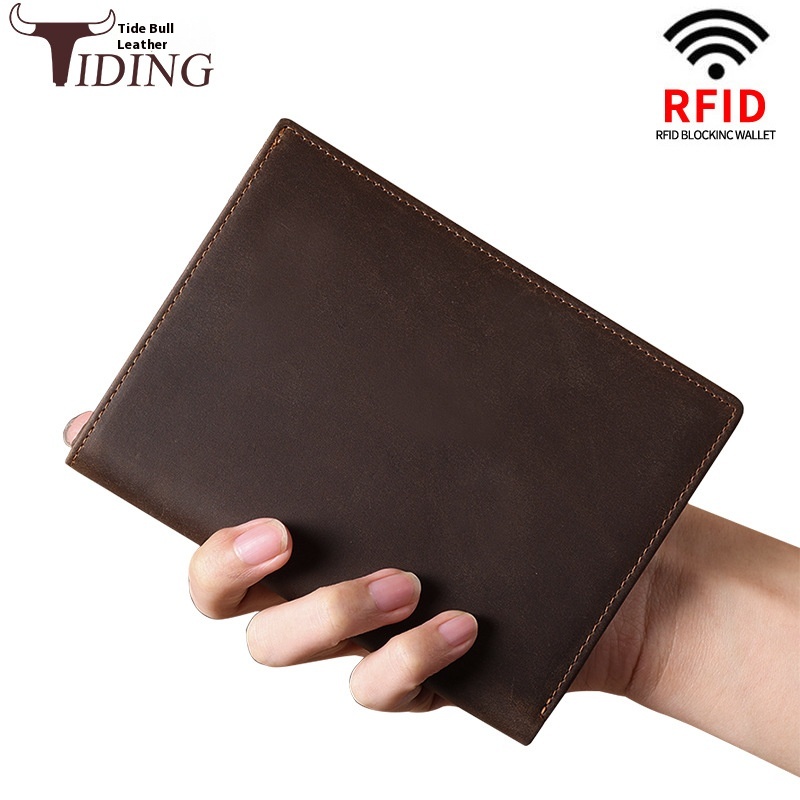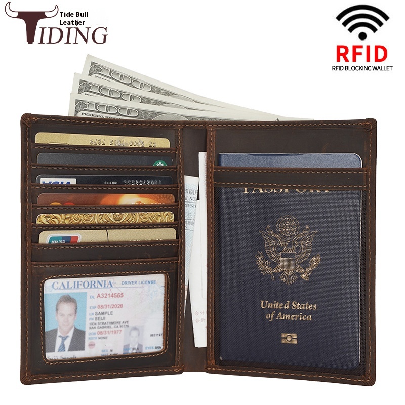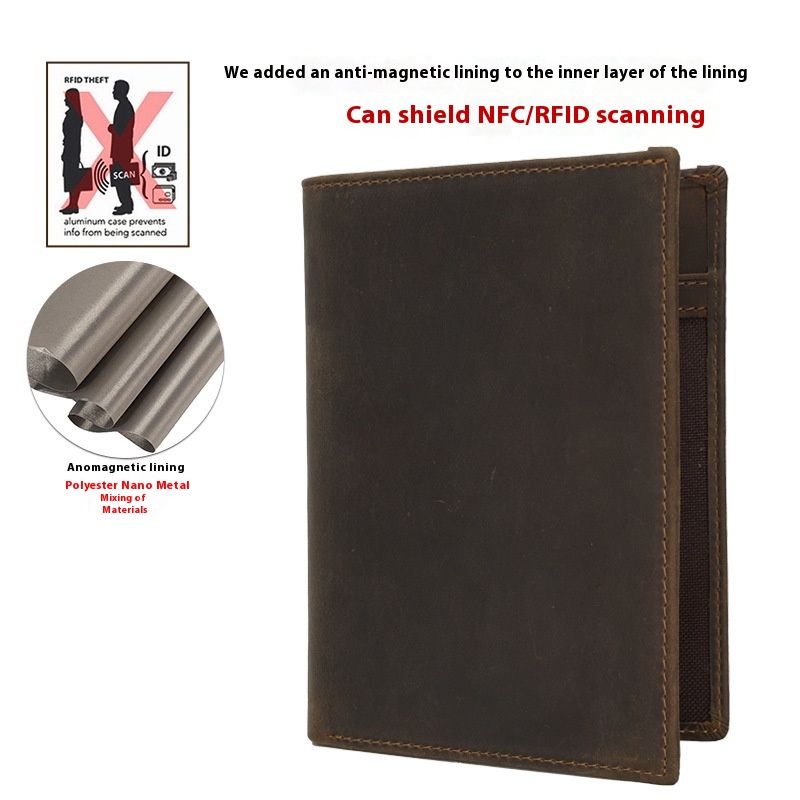 RFIDAntimagnetic Thin Genuine Leather Document Bag Wallet Card Bag Passport Bag