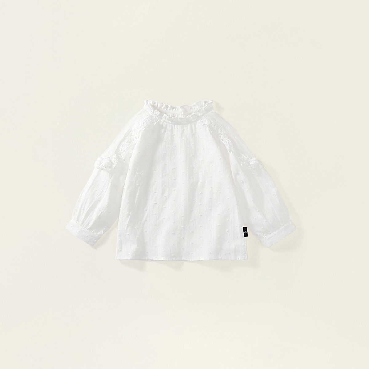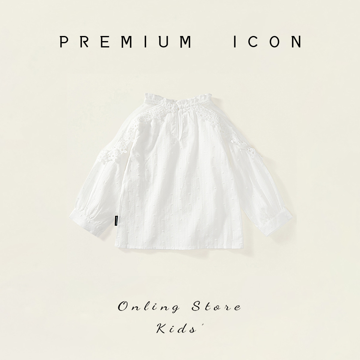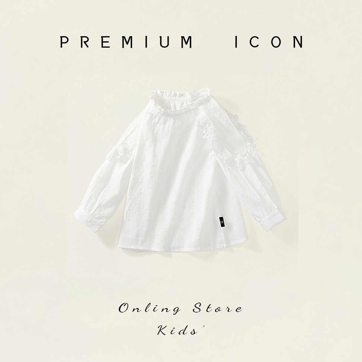Jela Girls'Shirt Spring And Autumn Korean Style White Lace Splicing Baby Girl Long Sleeve Top