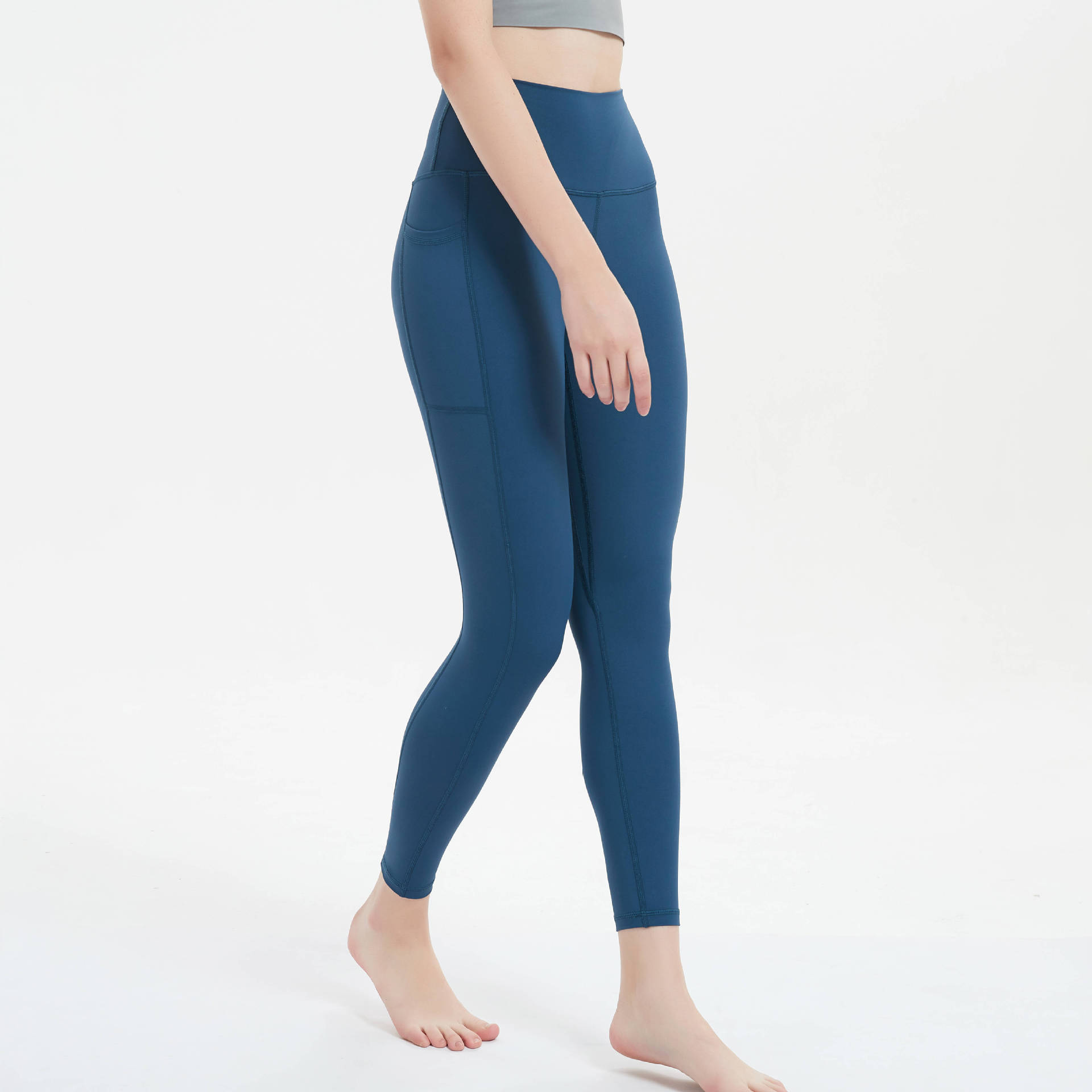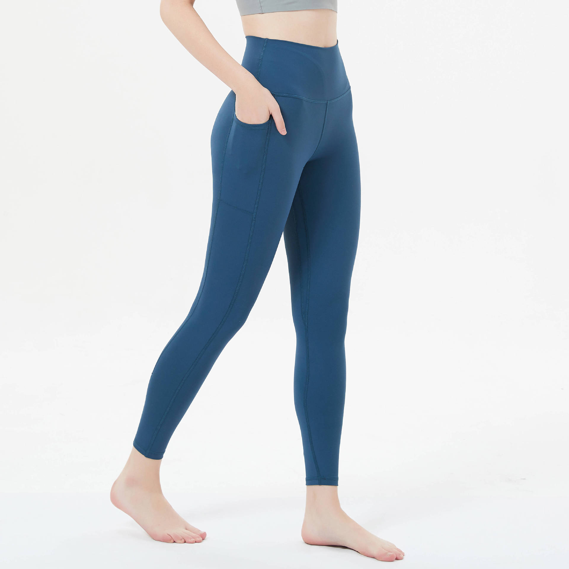 Large Size High-waisted Yoga Pocket Tights Peach Buttocks Abdominal Control Sweaty Fitness Sports Nine-point Compression Pants Summer