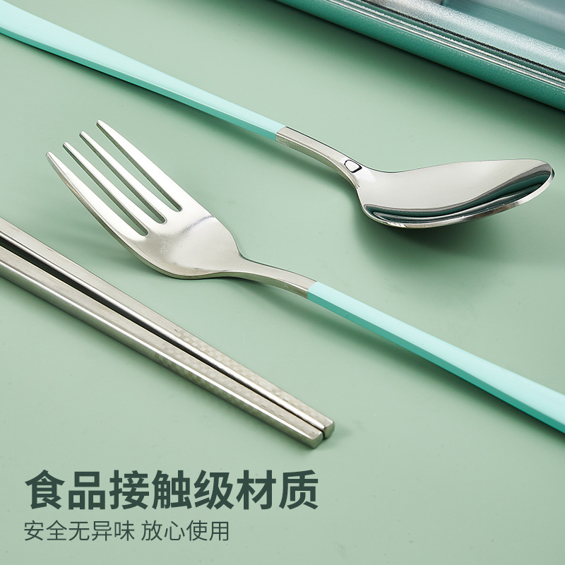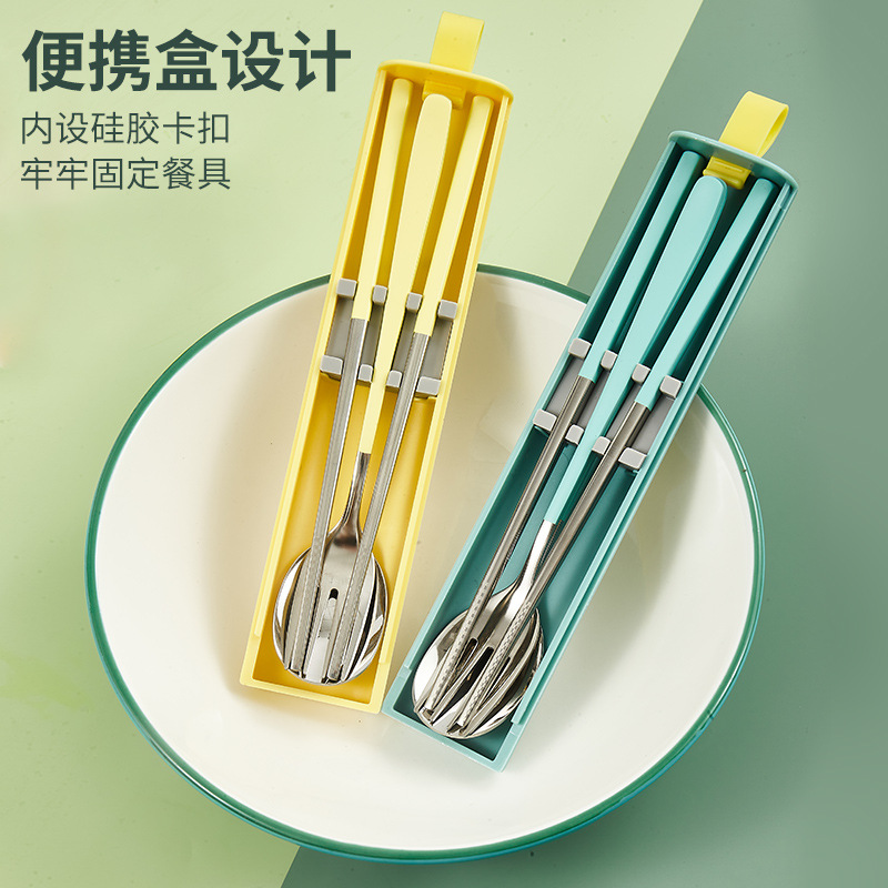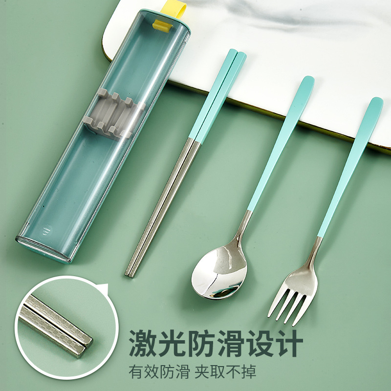 304 Stainless Steel Portable Tableware Chopsticks Spoon Set Cutlery Box Three-piece Set Student Printable