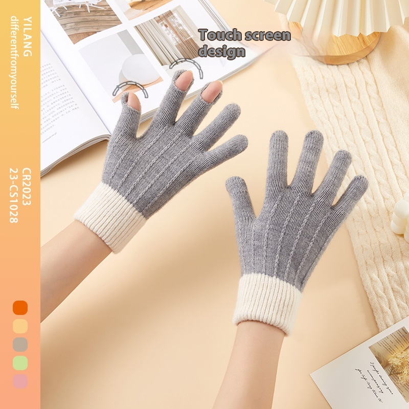 Winter Product Warm Plus Velvet Cold-proof Women's Knitted Gloves Korean Style Fingerless Touch Screen Gloves