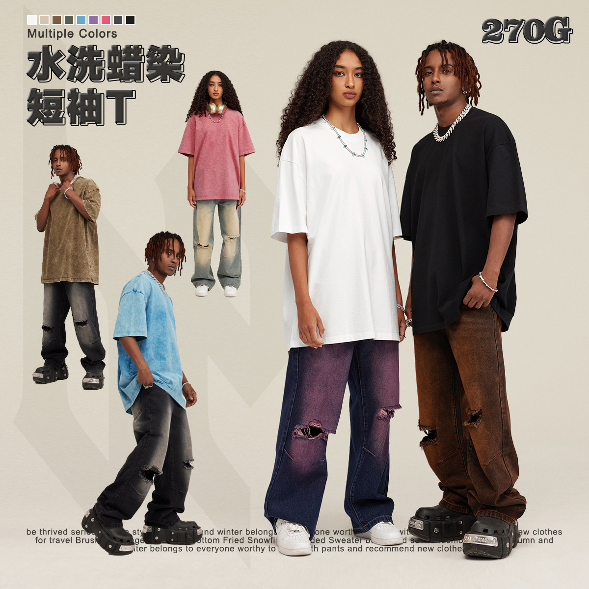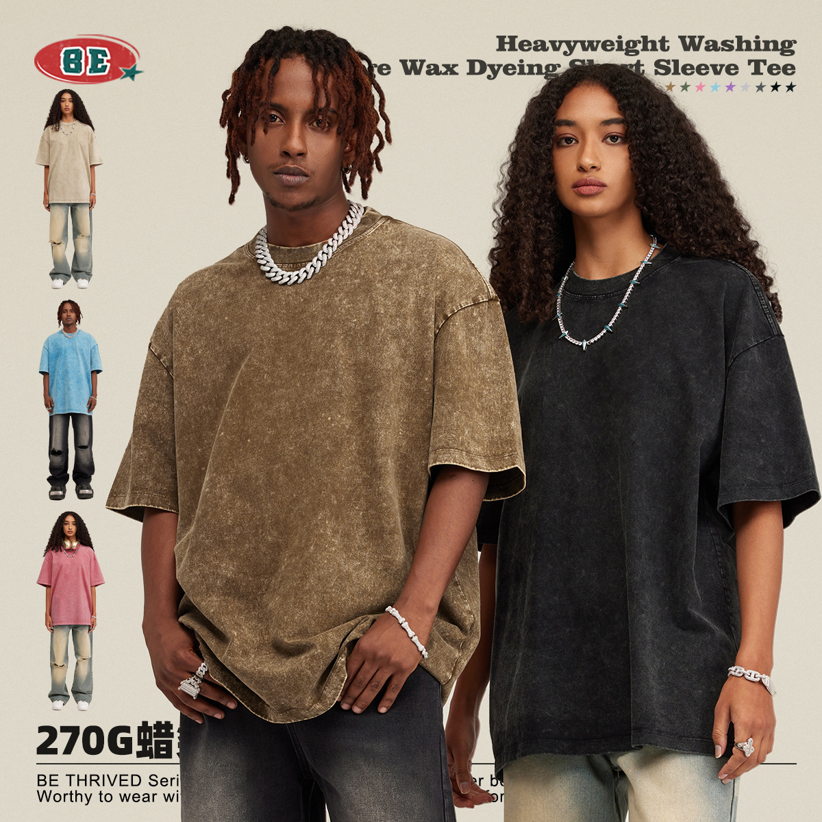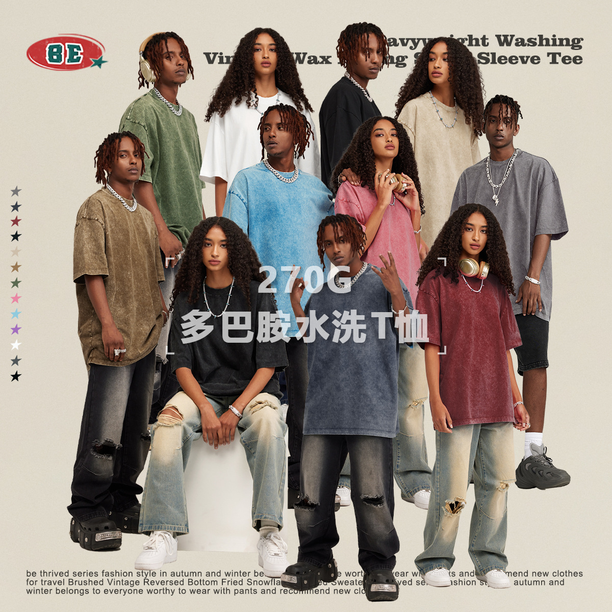 BEMen's Wear|Summer American Fashion Brand Heavy Retro Ba Washed Short Sleeve Men's Round Neck T-Shirt Couple Tops