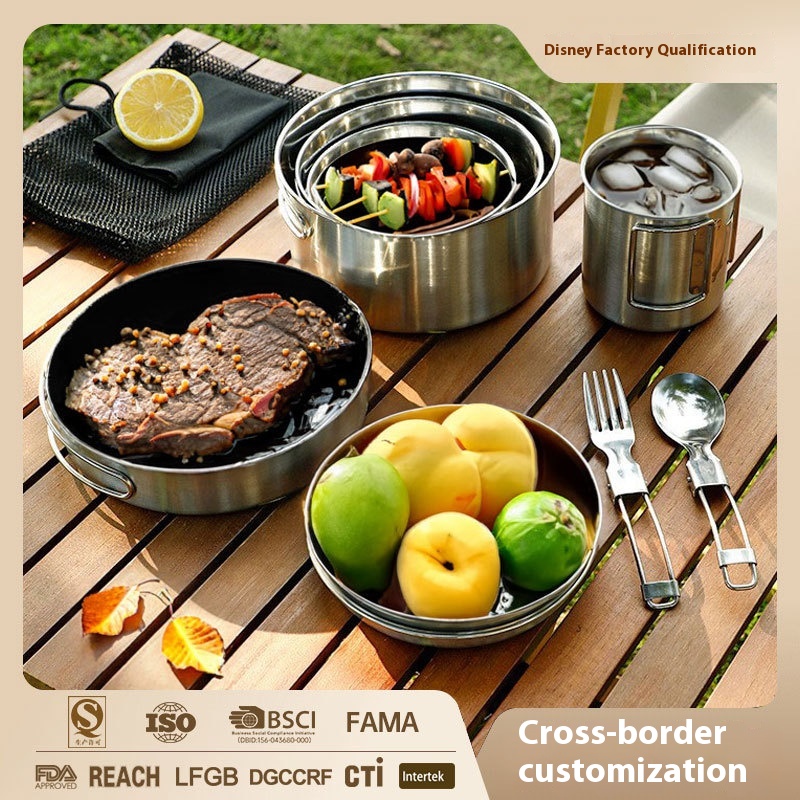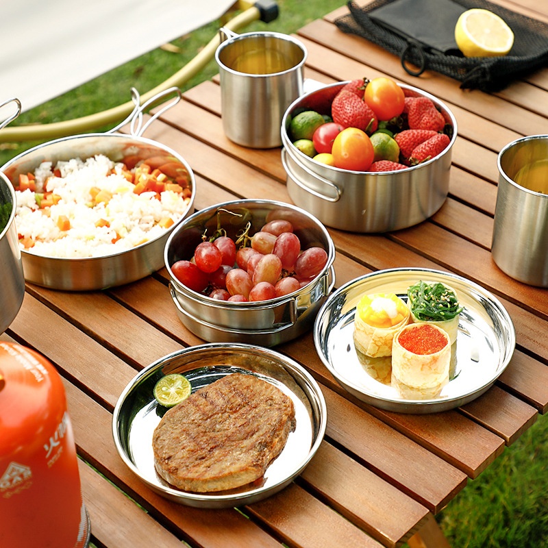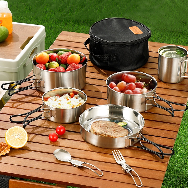 304 Stainless Steel Outdoor Pots, Camping Pots, Tableware, Picnic Camping Cookware Sets, Outdoor Portable