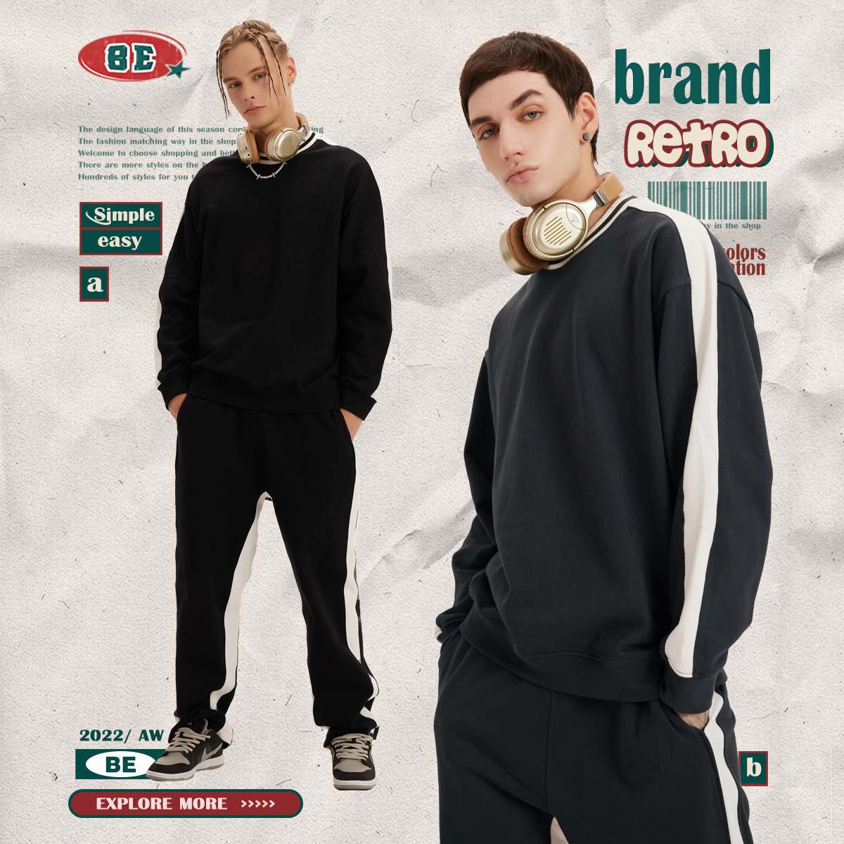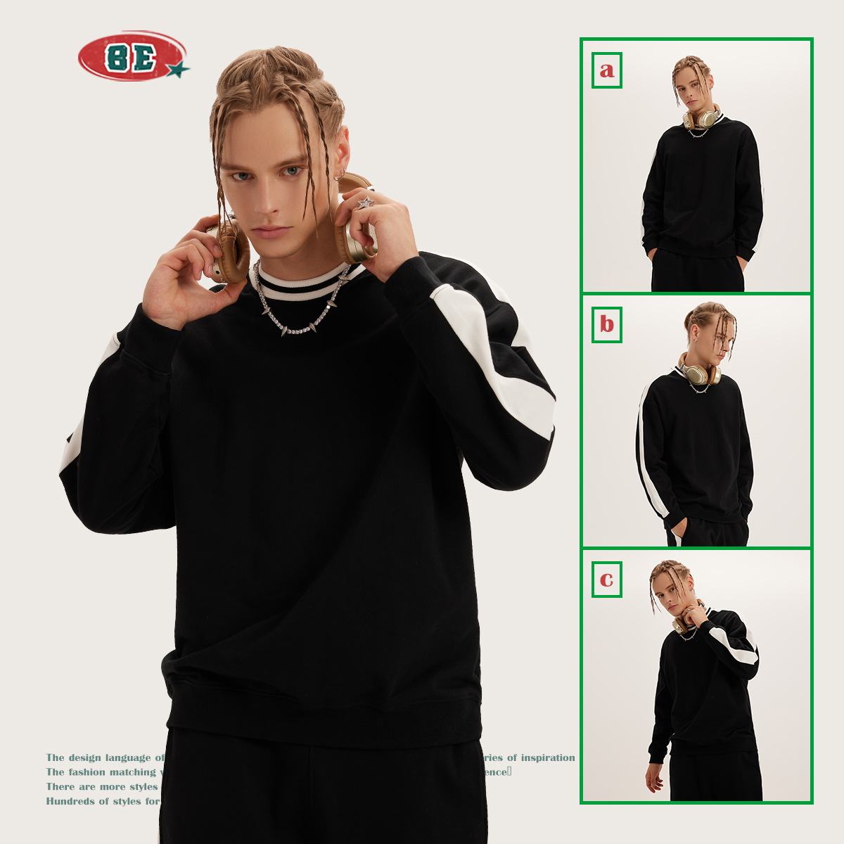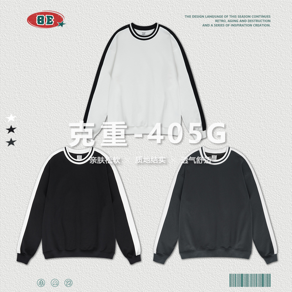 BEMen's Wear|Autumn And Winter American Round Neck Contrast Color Sweatshirt Men's Blank Shirt Loose Casual Couple Sports Suit