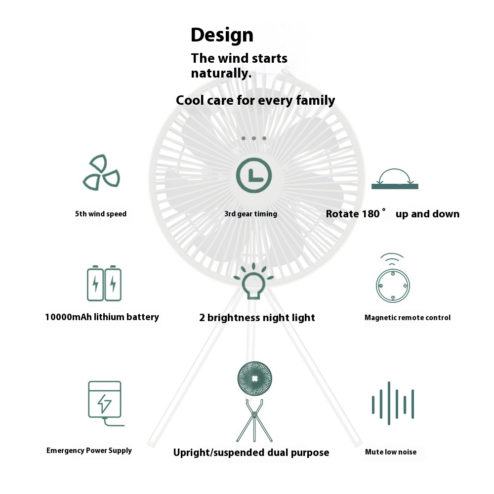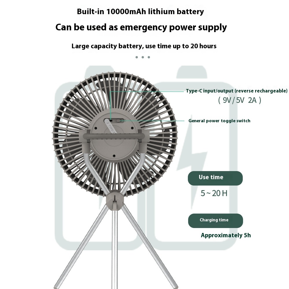 Camping Fan Outdoor Tripod Fan Ceiling Fan Silent10000m Ah Battery