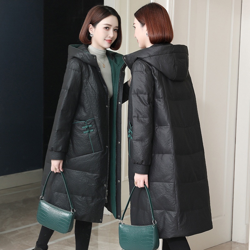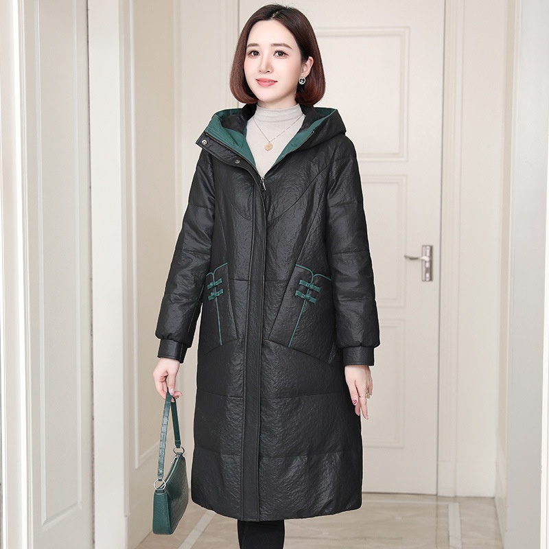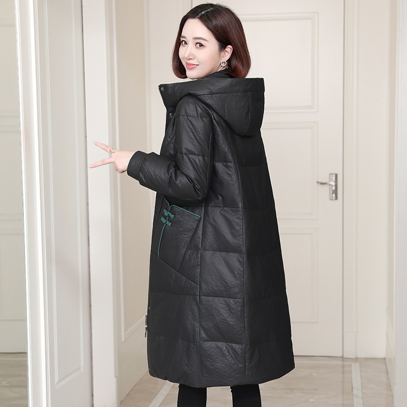 Haining Genuine Leather Down Jacket For Women Autumn And Winter Simple Large Size Sheepskin Jacket Mid-length Leather Coat