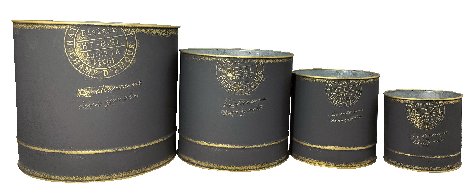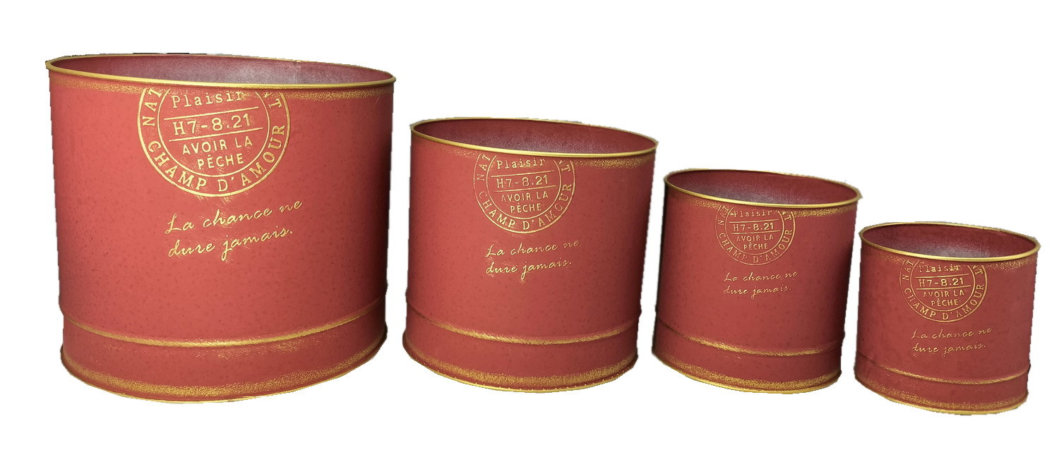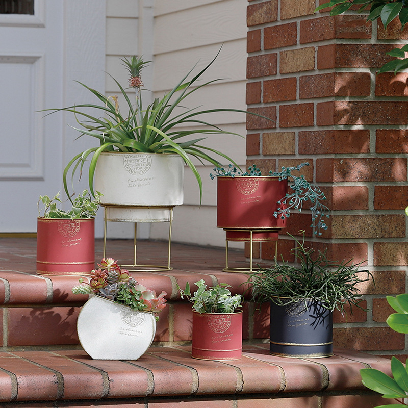 Round Postmark Punched Gold Straight Pot Round Barrel Flower Pot Gardening Iron Container Japanese Style Decorative Pot