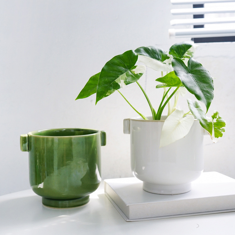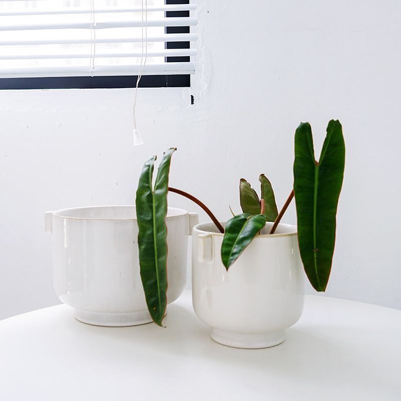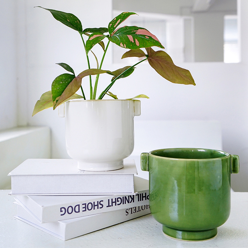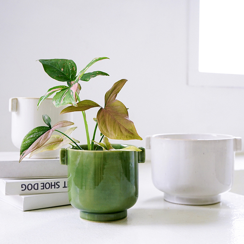 Japanese Simple Desktop Green Plant Pot Internet Celebrity Nordic Personalized Hydroponic Double Ear Set Pot Pothos Ceramic Flower Pot