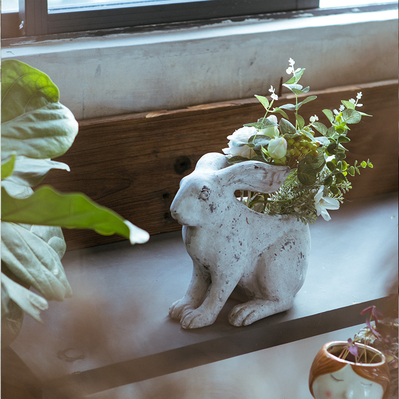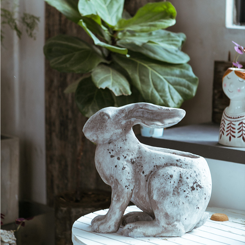 Outdoor Rabbit Flower Pot Ornaments Animal Shape Flower Pot Gardening Landscape With Succulent Resin Potted Retro Planting Pot