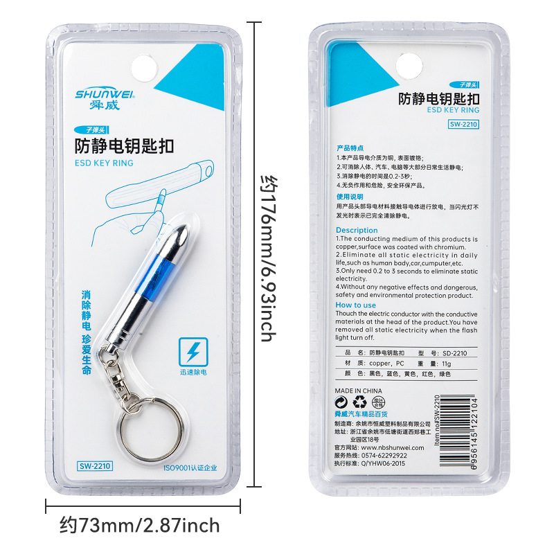 Shunwei SD-2210 Car Static Eliminator Keychain Static Eliminator Bullet Anti-static Keychain