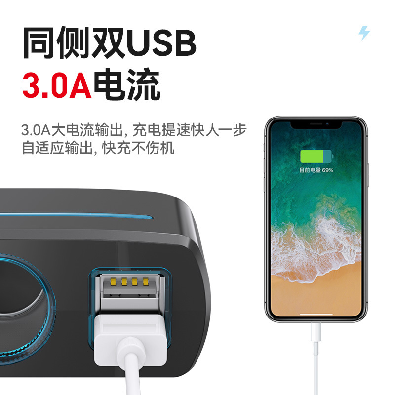 Shunwei Two-hole Dual USBCar Charger One Into Two Car Charger With LEDDistributor1928 A