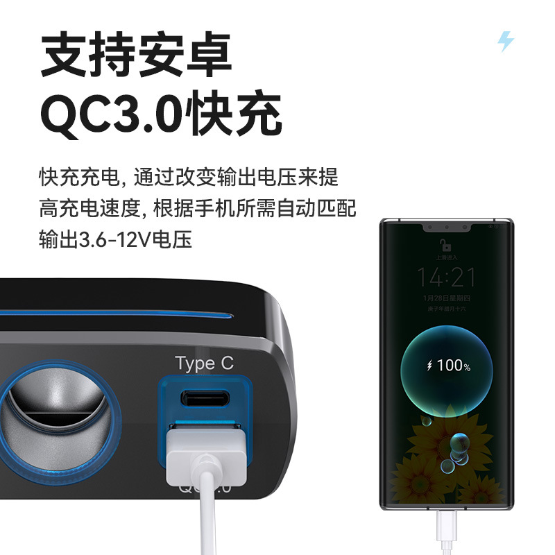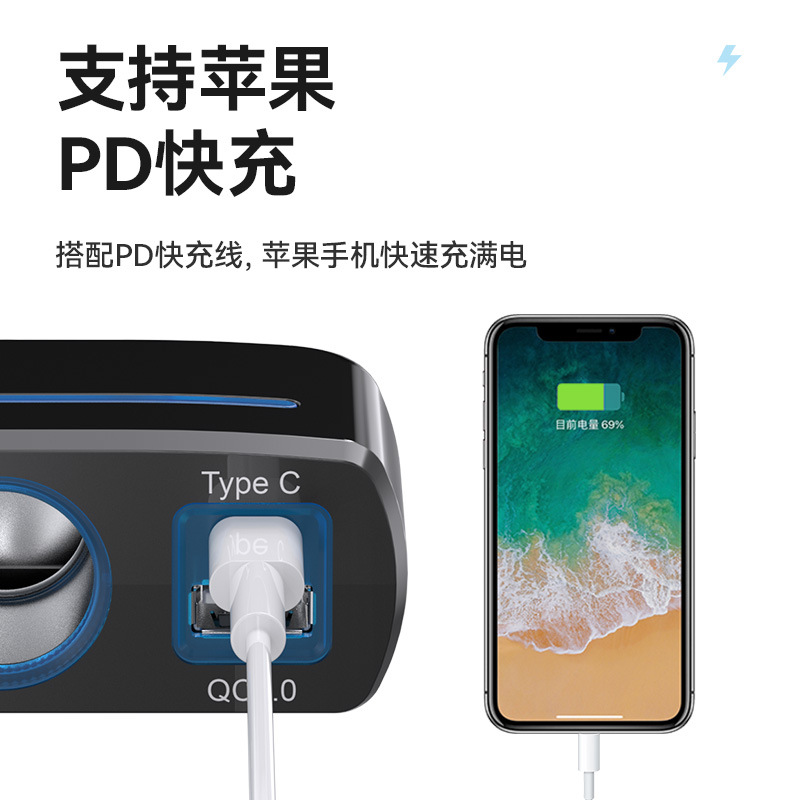 Car Cigarette Lighter,One To Three Car Charging Socket Distributor,One To Two Car Charger,Type-c Car Charger