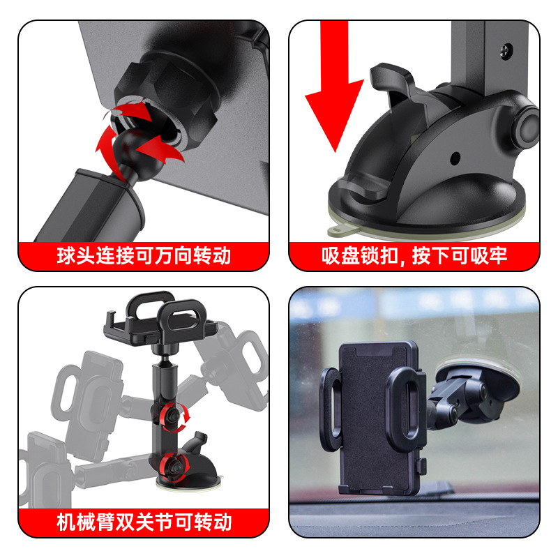 Car Mobile Phone Holder Suction Cup Car Navigation Device Holder Air Outlet360 Degree Adjustment Multifunctional Mobile Phone Clip