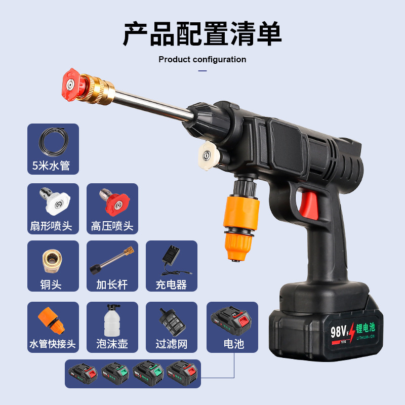 Car Wash Water Gun Wireless High Pressure Car Wash Artifact Charging Portable Household Electric Car Wash Machine Lithium Battery Watering Gun