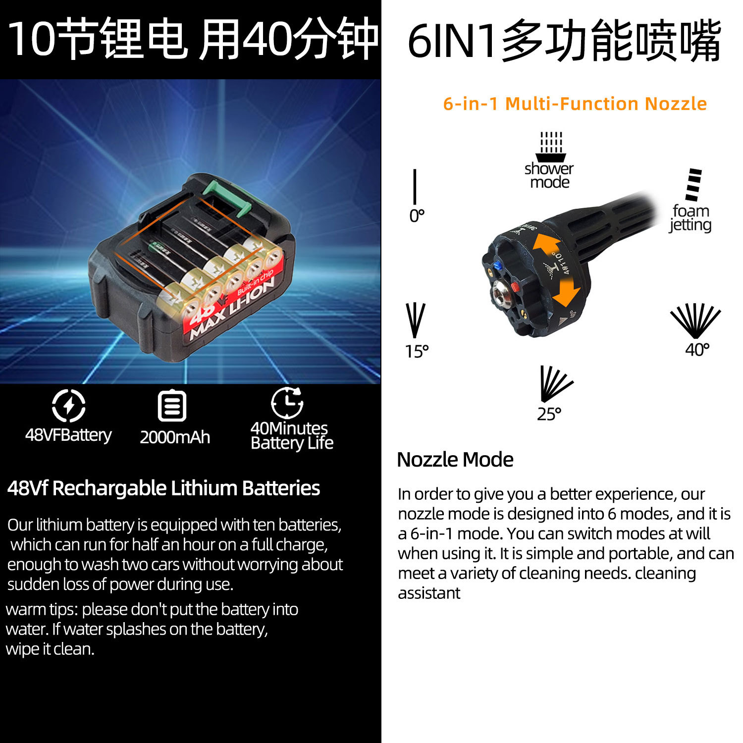 48 VFSikeo Electric Car Wash Water Gun Wireless Car Washer Home Car Portable Lithium Battery Washing Machine