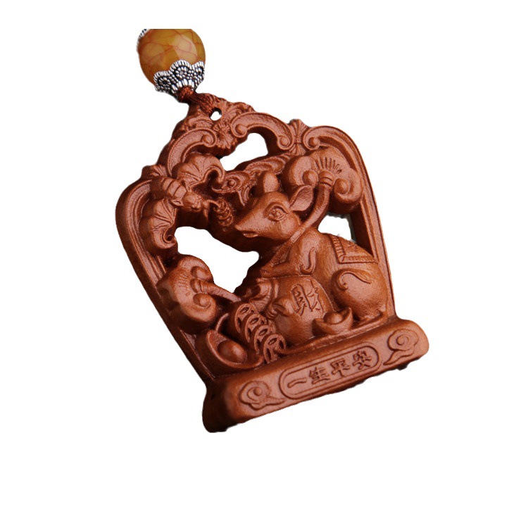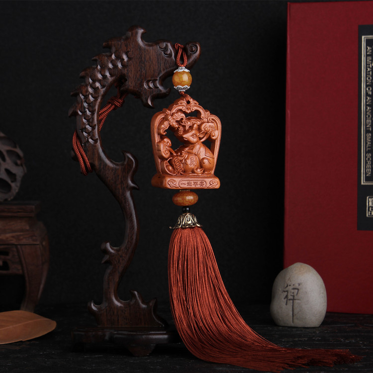 Peach Wood Zodiac Car Pendant Double-sided Carving Zodiac Guardian Angel Car Rearview Mirror Ornament SXG