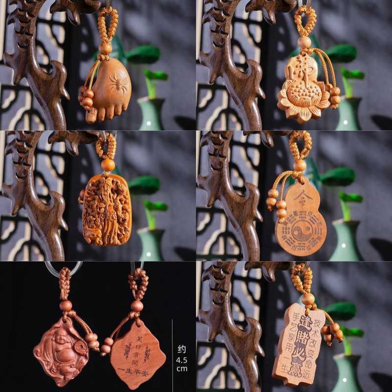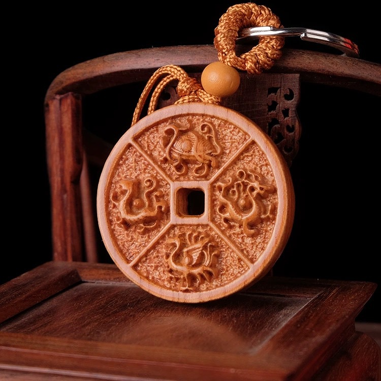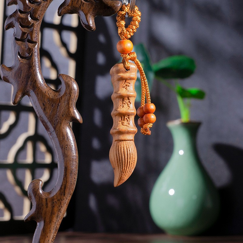Mahogany Car Keychain Plane Carved Get Rich Immediately Pixiu And Pisces Key Chain Pendant Gift