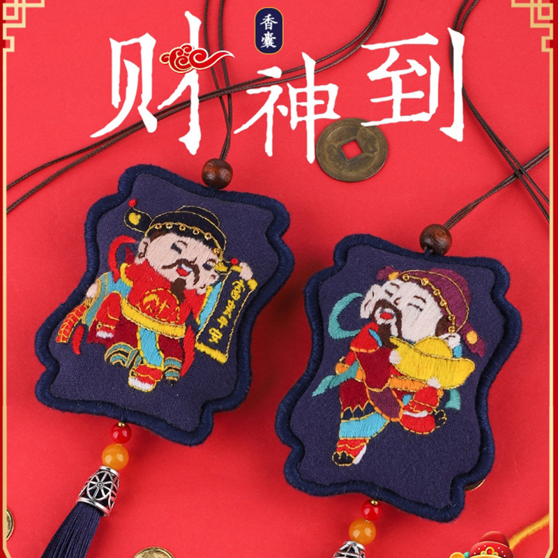 Embroidery Diy Handmade Self-embroidered Royal Guard Peace Talisman God Of Wealth Purse Material Pack To Give Boyfriend Peaceful Fortune Car Hanger