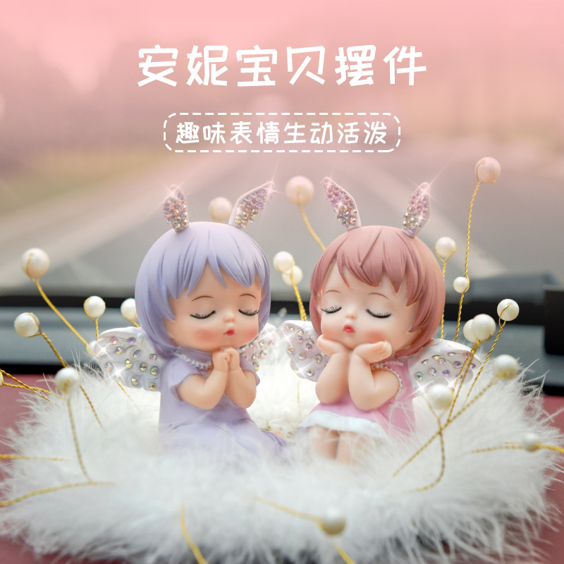 Internet Celebrity Cute Annie Car Ornaments Creative Angel Central Control Perfume Table For Women's Car Decoration Car Interior Accessories