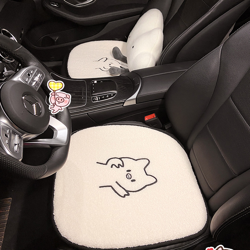Car Seat Cushion Goddess Style Cute Cartoon Lamb Velvet Warm Anti-slip Seat Cushion Winter Single Piece Car Interior Supplies