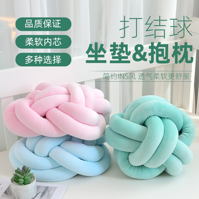 Hand-knotted Woven Pillow Square Cushion Danish KNOTBall Chinese Knot Sofa Bay Window Decorative Cushion
