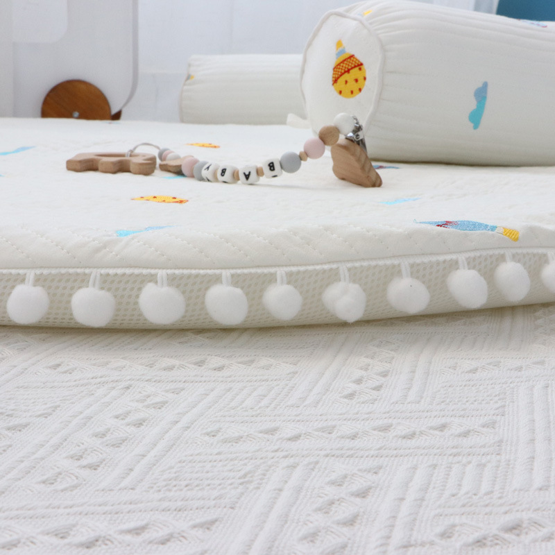 Born Baby Crawling Mat Thickened Embroidered Game Mat Children's Room Cushion Pure Cotton Floor Mat Round Crawling Mat