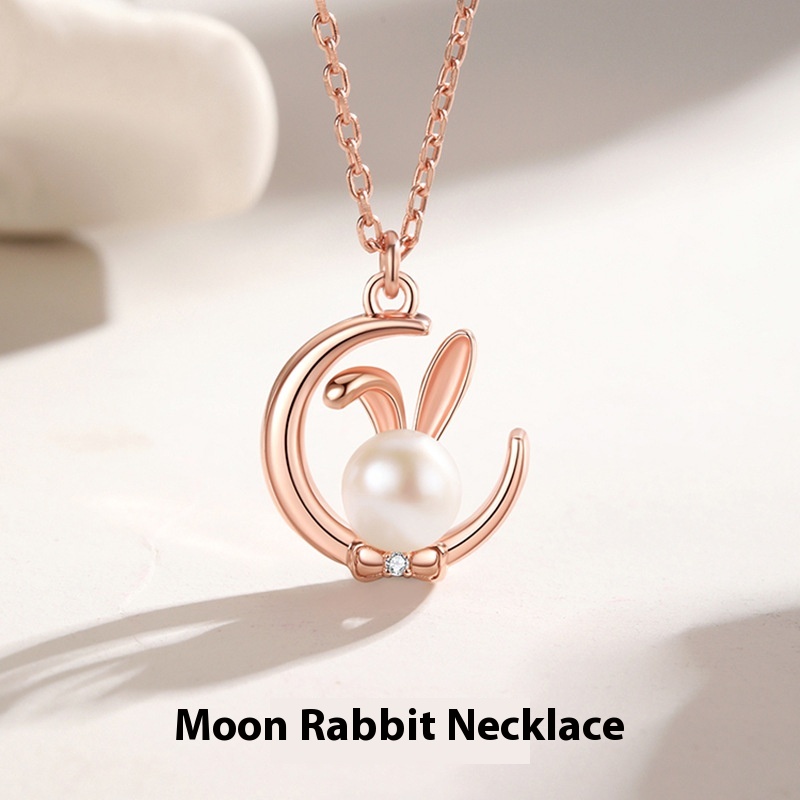 S925 Sterling Silver Moon Rabbit Pearl Necklace For Women Summer Light Luxury Niche Pendant Wedding Bridesmaid Internet Celebrity Companion Gift For Women