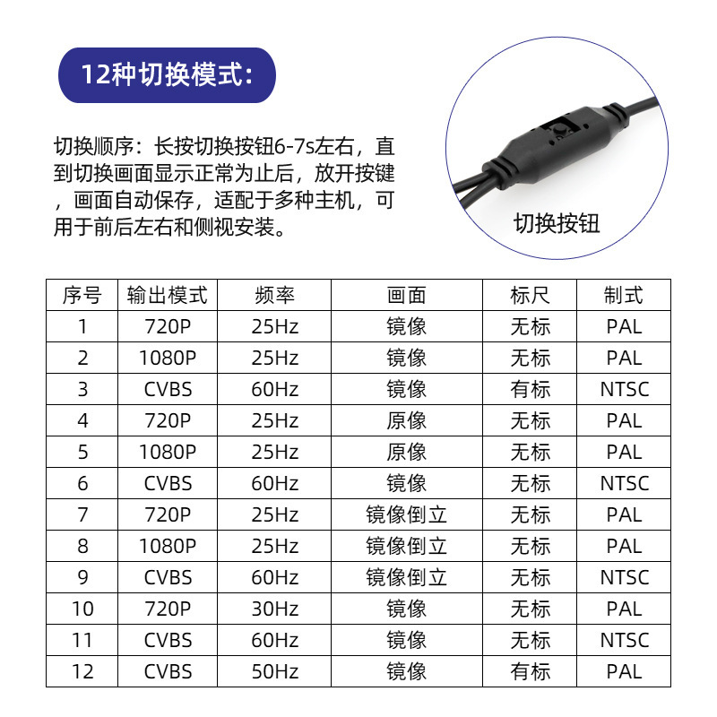 General Motors Universal1080p Rear View Cvbs Car Imaging Ahd Switchable Reversing Camera Front And Rear View
