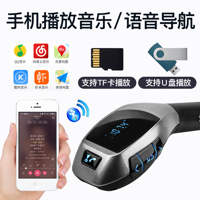 Bluetooth Car Mp3 Player Receiver Car Cigarette Lighter Type Lossless Music UDisk Type USBX5