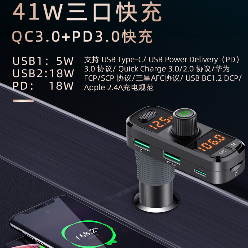 High Quality Car Mp3 Bluetooth Player BC70 Lossless Sound Quality QC3.0/PDFast Charging Multi-function Car Mp3