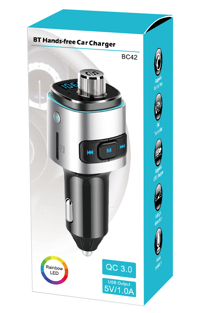 Car Mp3 Player Car Bluetooth Receiver FMTransmitter7-color Ambient Light QC3.0 Charging BC42