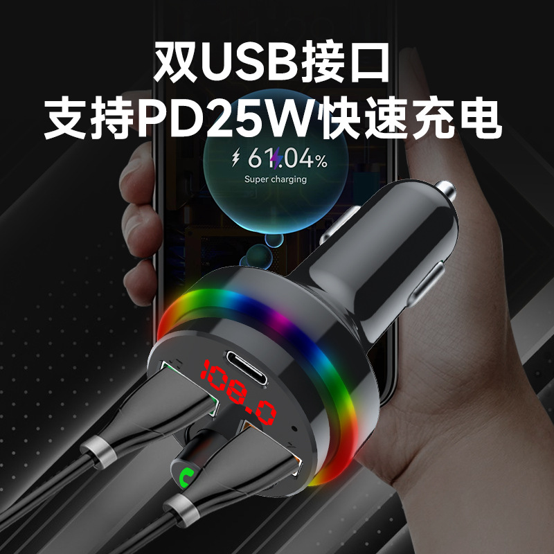 Car MP3 Player Car Bluetooth Music Receiver Colorful Car Bluetooth Fast Charging Player Dual USBCharger