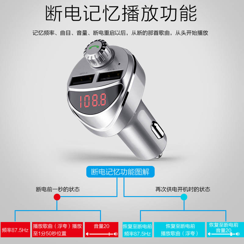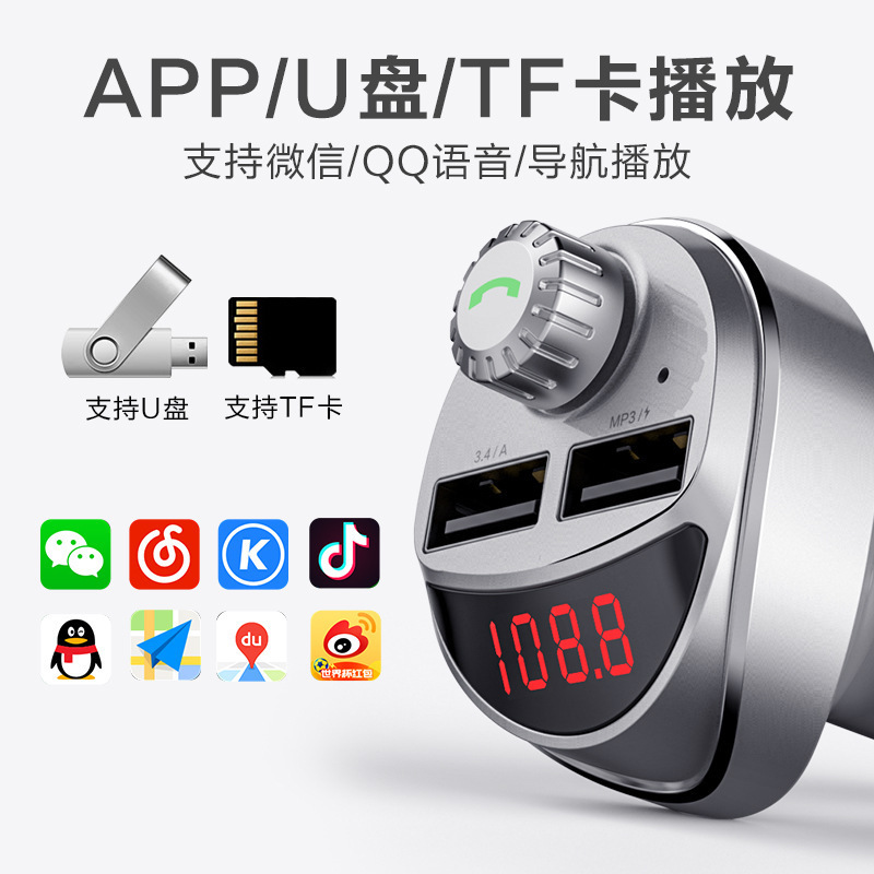 Car Bluetooth Hands-free MP3 Player Car Cigarette Lighter Multi-function Digital Display Dual U4.4 ABluetooth Car Charger