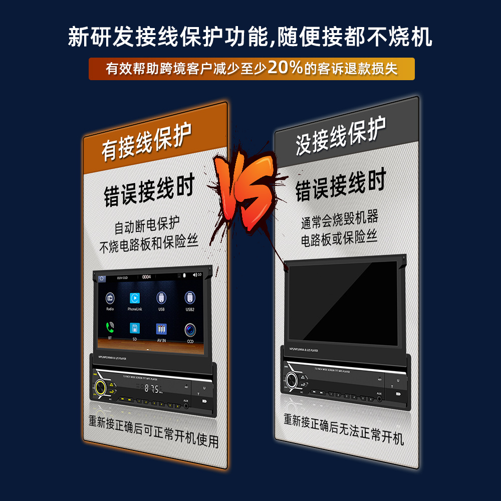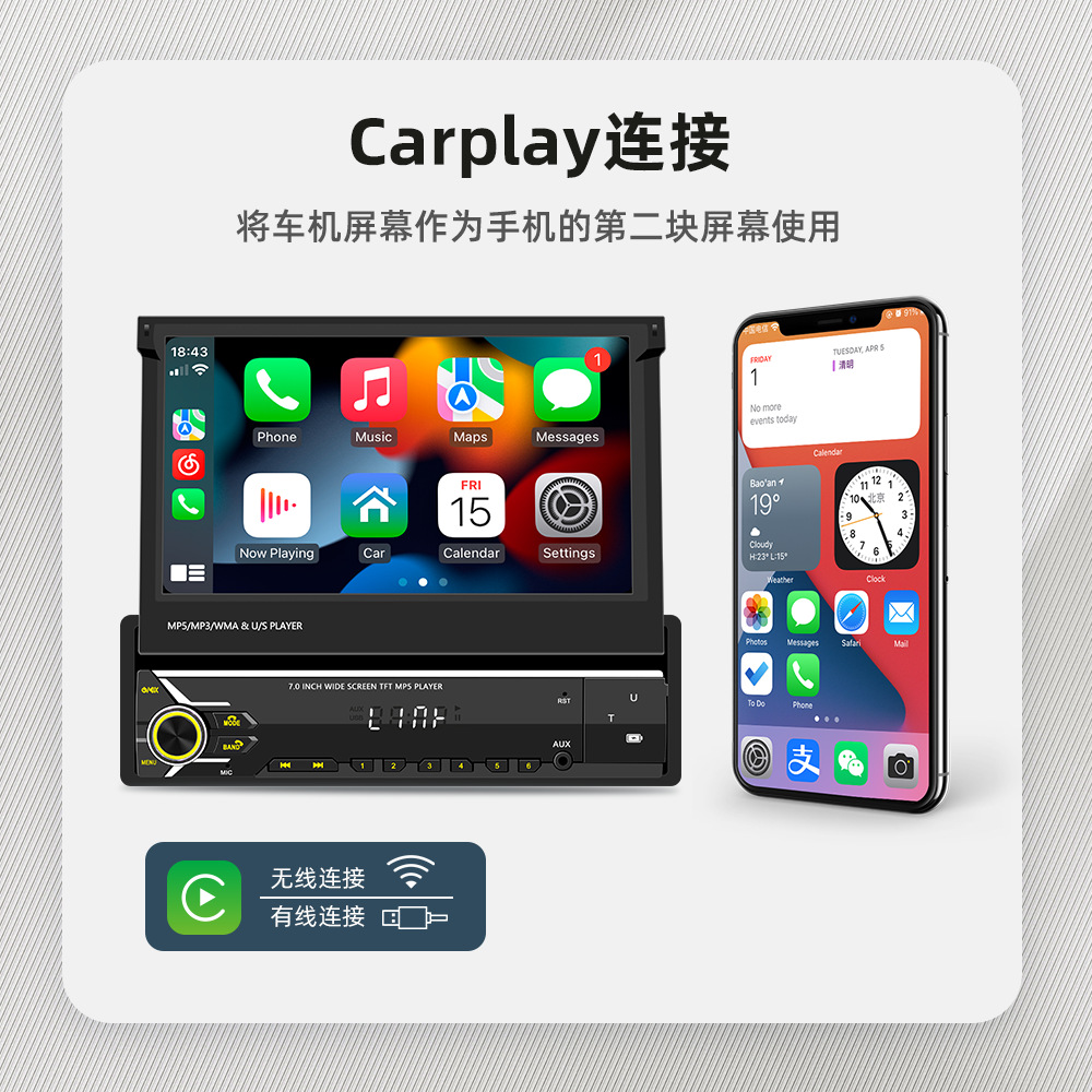 7-inch Retractable Screen Car MP5 Player Reversing Connected Car MP4 Bluetooth Card Host Wireless Carplay