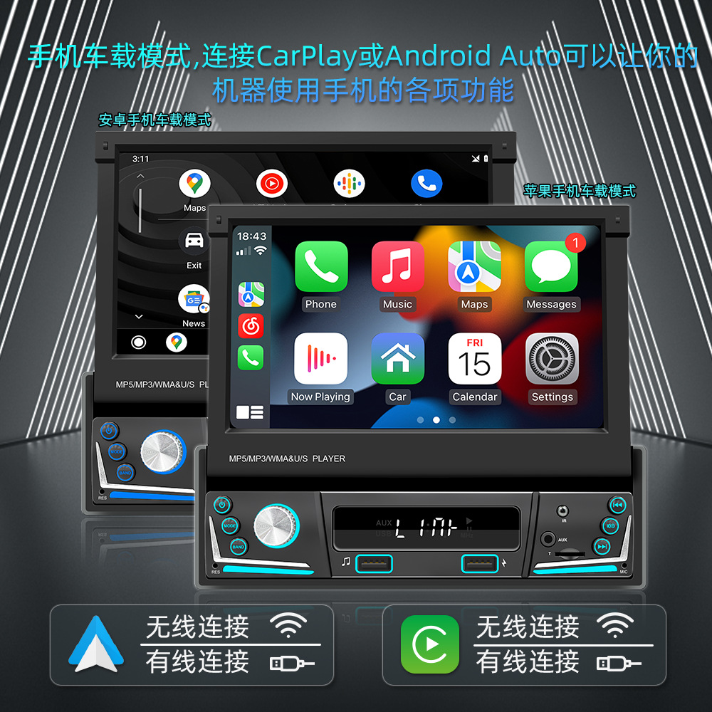 7-inch Retractable Screen Car/car MP5 Player Smart Bluetooth Reversing Camera All-in-one Wireless Carplay