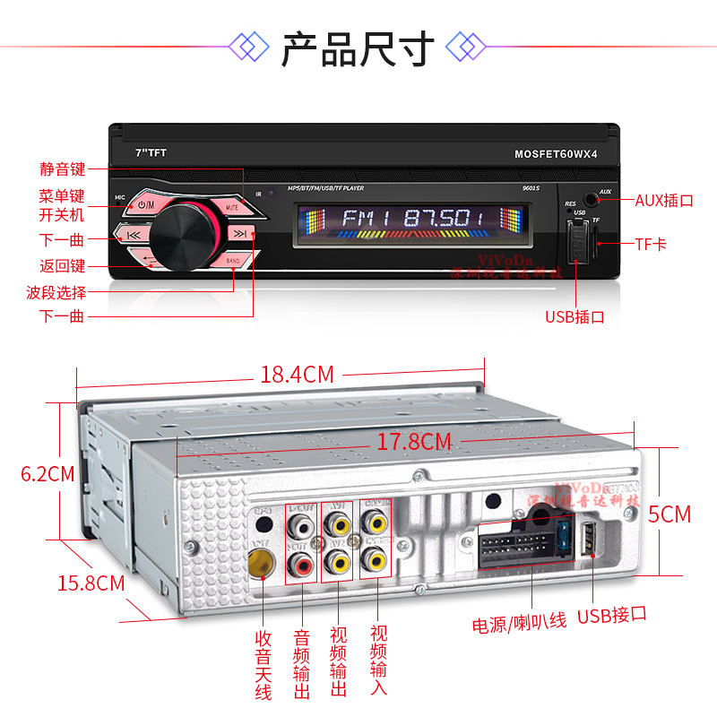 7-inch Car Retractable Screen MP5 Android Navigation Car Player MP4 Bluetooth Call Reverse Priority Carderter