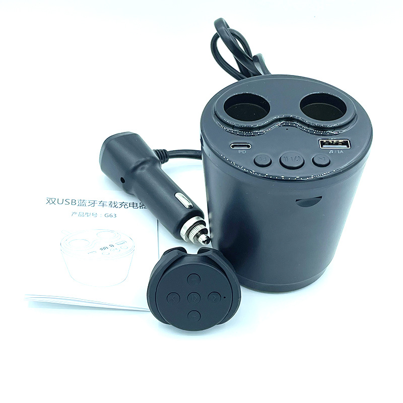 G63 Car Mp3 With Remote Control Card/UDisk Playback Bluetooth Hands-free One-to-two Cigarette Lighter Socket Car Charger