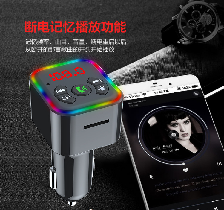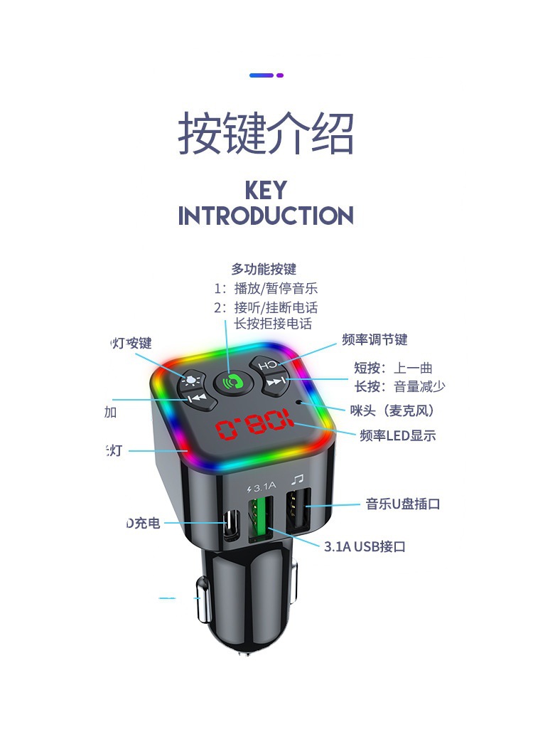 Car Mp3 Player Car Bluetooth Receiver Model With Ambient Light Dual USBCar Charger UDisk Lossless Music