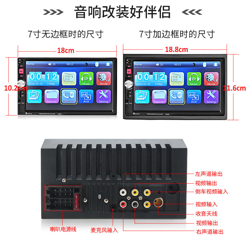 Video Audio7-inch Car High-definition MP5 Player MP4 Bluetooth Hands-free Reversing Priority Cardertion Machine7080 Hot Model